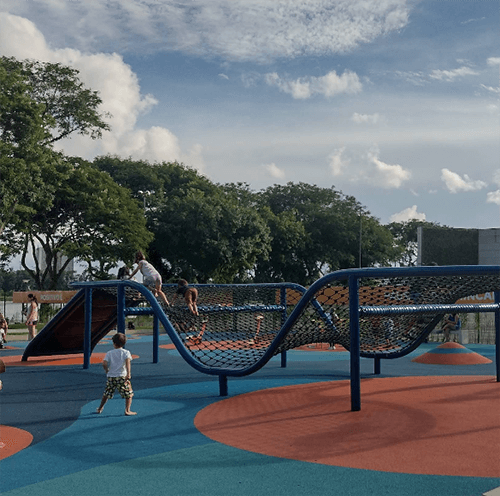 Além disso, as quadras poliesportivas permitem a prática de esportes como vôlei, basquete e futebol, reunindo grupos de amigos e famílias em momentos de diversão coletiva. Esses ambientes incentivam a convivência e o espírito esportivo, tornando o parque um verdadeiro ponto de encontro para atividades ao ar livre.