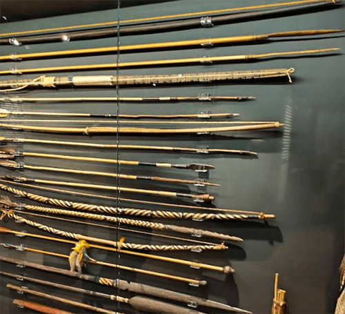 Artefatos que representam o cotidiano das comunidades indígenas, como utensílios de caça, pesca e alimentação.